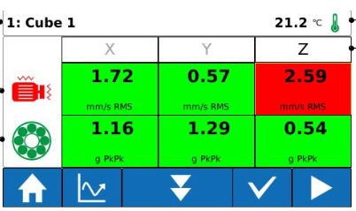 - Output: 2 sorties (g, mm/s, µm) en 4-20mA ou 0-10V